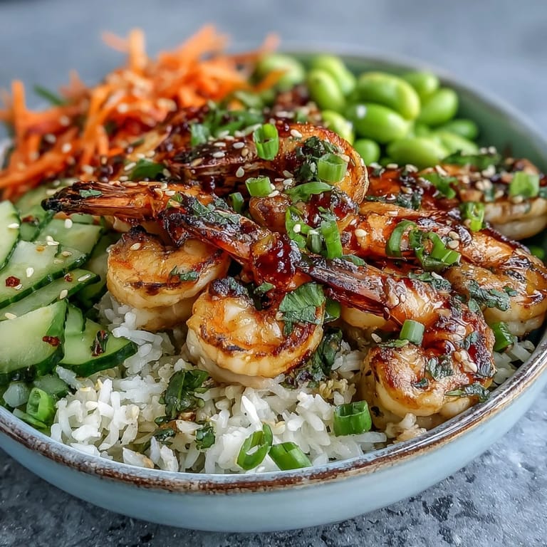 Pin It My neighbor showed up one summer evening with a bag of massive shrimp and asked if I wanted to experiment with something light for dinner. I had jasmine rice in the pantry and some vegetables that needed using, so we threw together this bowl on the spot, drizzling it with a ginger-sesame dressing I'd been meaning to make. The shrimp hit the hot pan and filled the kitchen with this amazing smell, and suddenly what could have been ordinary felt special. That's when I realized this wasn't just a weeknight meal, it was my favorite kind of cookingโsimple, fast, and tasting like you'd spent way more time on it than you actually did.