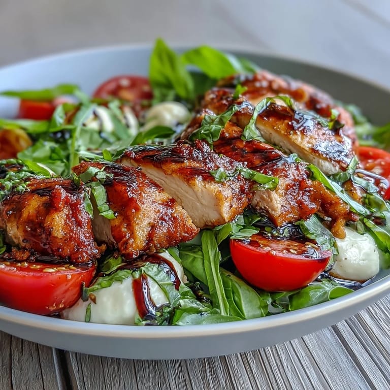 The secret to not serving lukewarm bowls is prepping your components so everything can go together quickly—grill the chicken first and let it rest while you arrange greens and mozzarella, because cold mozzarella next to warm chicken is exactly the contrast you want. If you're making the balsamic reduction ahead, you can reheat it gently just before serving, and it tastes almost as good as freshly made.