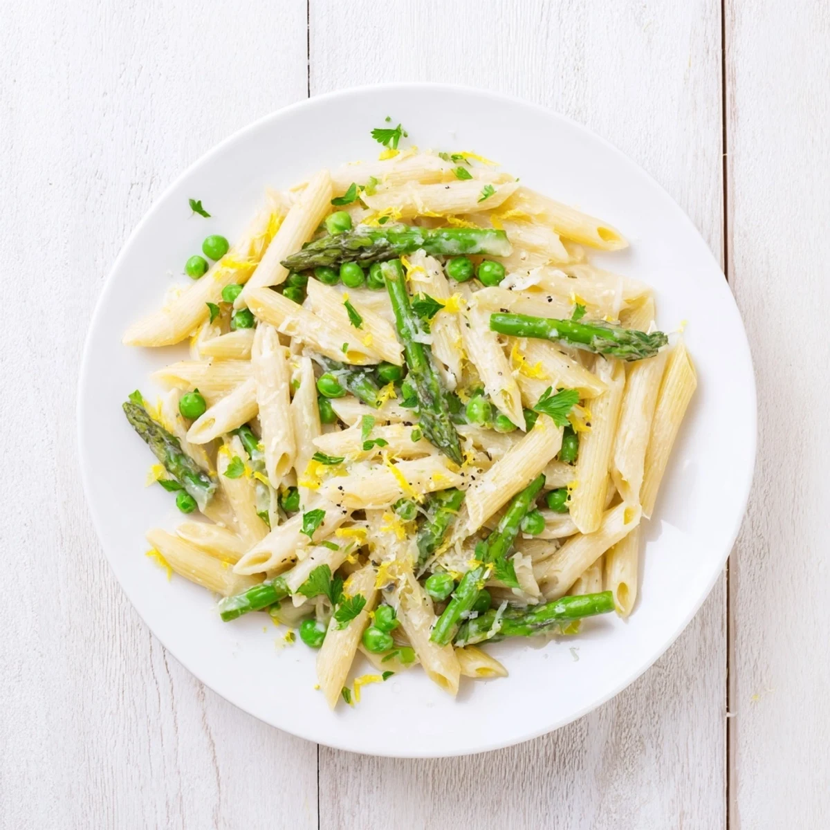 The secret is having everything prepped before the pasta hits the water. Once those vegetables hit the hot pan, they move fast, and you do not want to be grating cheese or mincing garlic while the asparagus is already turning from bright to dull.