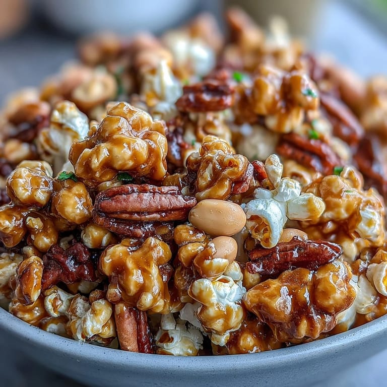 Whether you're hosting a crowd or enjoying a solo snack, this caramel popcorn mix brings nostalgia and comfort all in one bowl. The caramel coats every kernel and peanut, baking into crunchy clusters that are simply addictive. Prepare to elevate your snack game this season with this delicious treat!
