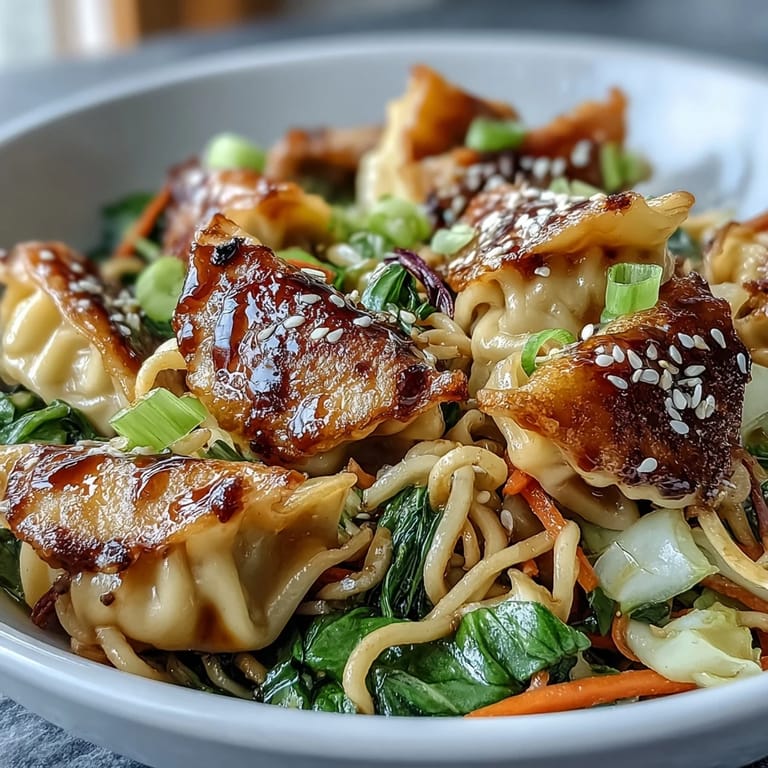 Pin It The first time I made these bowls, it was purely out of desperation. I had a bag of frozen potstickers staring at me from the freezer and some vegetables that needed using, but zero motivation to make separate dishes. My roommate walked in just as everything hit the pan, that incredible smell of garlic and sesame oil filling the whole apartment. We both ended up eating standing up at the counter because neither of us could wait to sit down.
