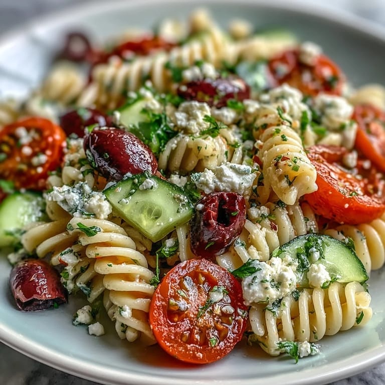 Pin It It was a sunlit afternoon when I first mixed together a Greek-inspired pasta salad, music playing from the neighbor upstairs and the window cracked open to let in the breeze. There was no grand plan—just a craving for something crisp, tangy, and full of color after a morning spent tending the little potted basil on the balcony. Tomatoes lined the cutting board, their scent mingling with garlic and dill as I started slicing, and every element felt as lively as mid-June itself. I remember laughing at my own enthusiastic chopping, splattering tiny bits of cucumber onto a nearby recipe printout. Even the feta crumbled in my hands like a playful promise of what summer tastes like.