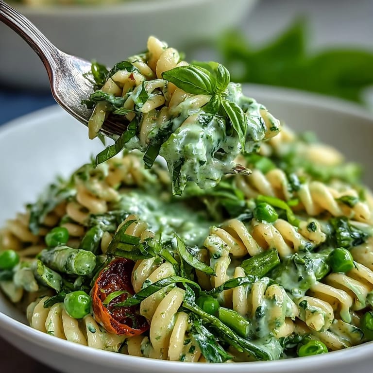 Pin It My neighbor showed up at my door one sweltering afternoon with a container of this pasta salad, and I was instantly won over by how vibrant it looked—those flecks of basil catching the light, the peas scattered like little jewels through the pasta. She mentioned it was vegan, and I remember thinking it couldn't possibly be creamy without dairy, but one bite proved me hilariously wrong. Now I make it almost weekly when I want something that feels both indulgent and impossibly light.